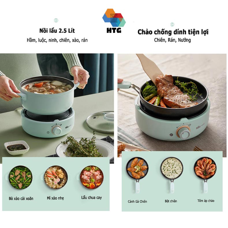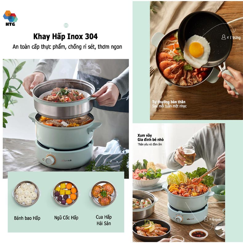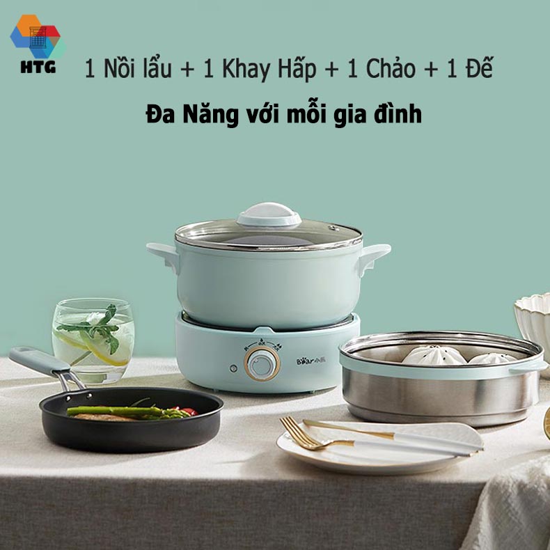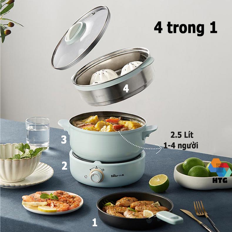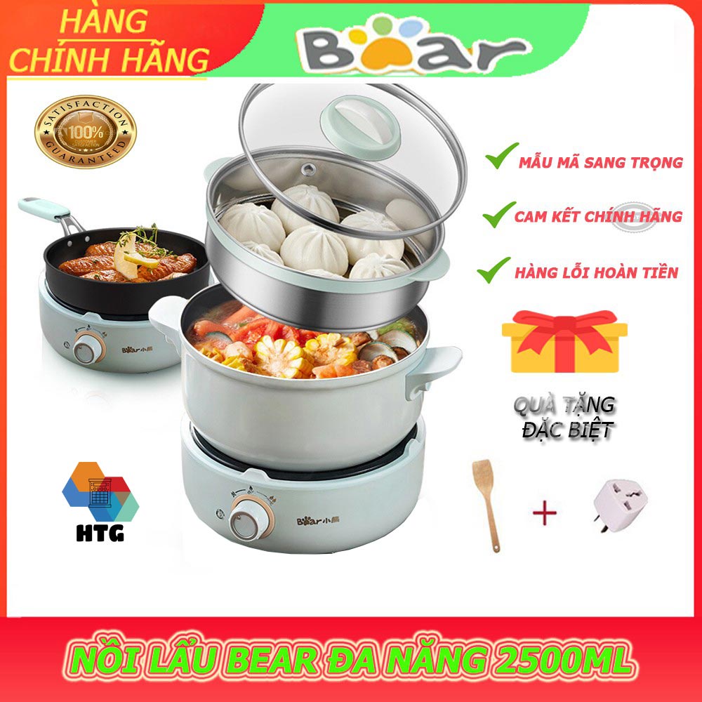 Nồi Lẩu Điện Đa Năng 3 Tầng, 4 Trong 1 Bear DHG-B25B2 Bộ Full, Tặng Kèm Muôi Xúc Và Mút Đệm Đế, hàng chính hãng