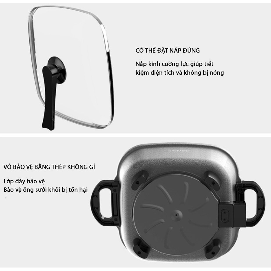 - Ngoài ra với tính năng đa năng trong nội trợ, việc chế biến các món ăn khác nhau với nồi lẩu điện đa năng trở nên dễ dàng hơn bao giờ hết với công nghệ hiện đại.