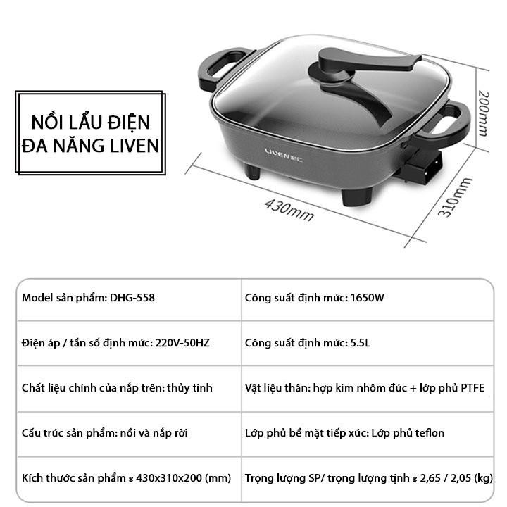 - Xào, chiên, ninh, hầm, nấu lẩu… với tính năng hữu hiệu Nồi lẩu điện đa năng Liven DHG-558