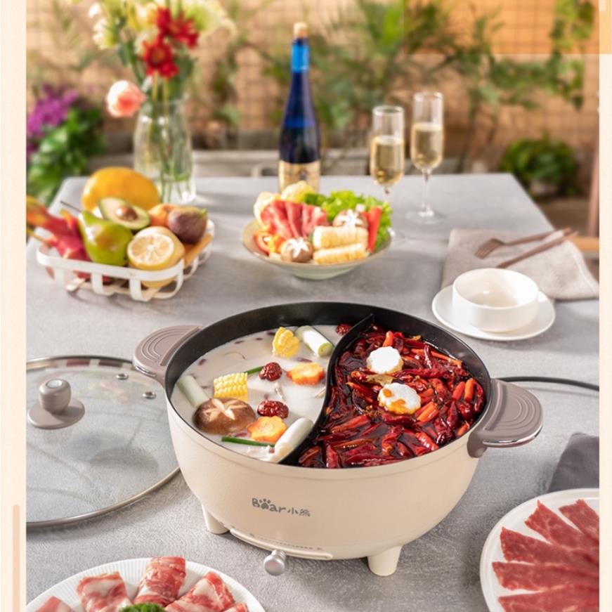 Nồi lẩu điện đa năng Bear DHG-B60K1, dung tích 6 lít, có thể chiên và xào, nồi nhiều lớp