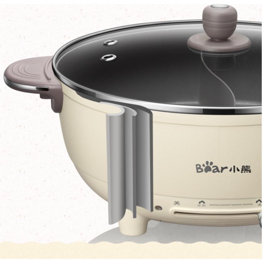 Nồi lẩu điện đa năng Bear DHG-B60K1, dung tích 6 lít, có thể chiên và xào, nồi nhiều lớp