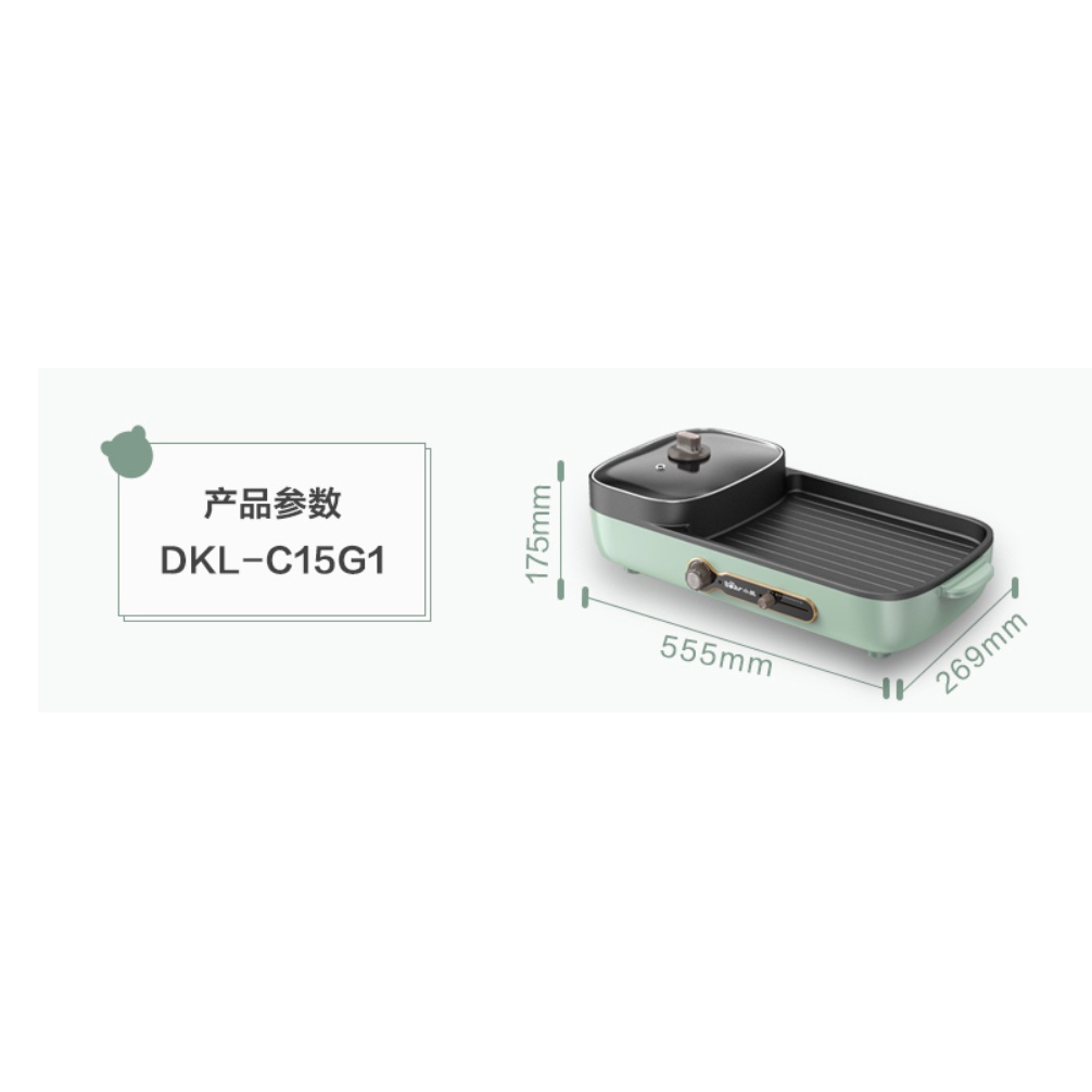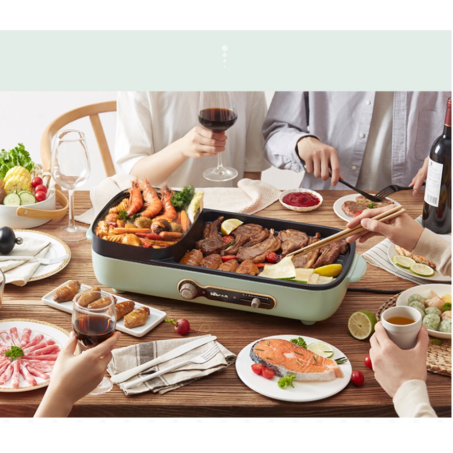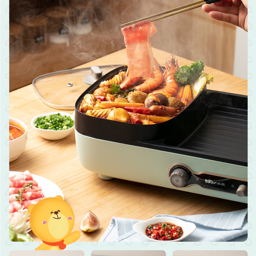 Giới thiệu [Mã 254ELSALE giảm 7% đơn 300K] Nồi lẩu điện đa năng Bear DKL-C15G1, bếp nấu đa năng, sử dụng vừa ăn lẩu vừa nướng