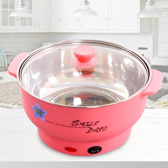 Nồi lẩu điện đa năng, ca nấu mì mini có nắp kính size 26