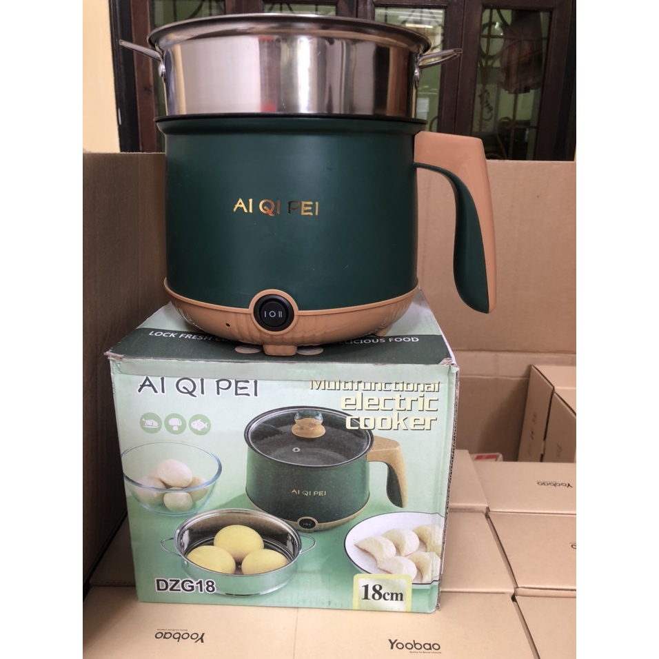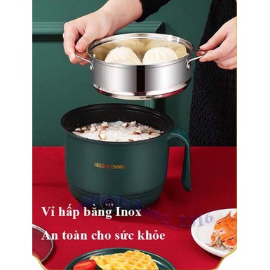 Nồi Lẩu Điện Đa Năng , Ca nấu mì,nồi cơm mini 2 NẤC NHIỆT Kèm Giá Hấp 18cm.Mẫu mới 2021
