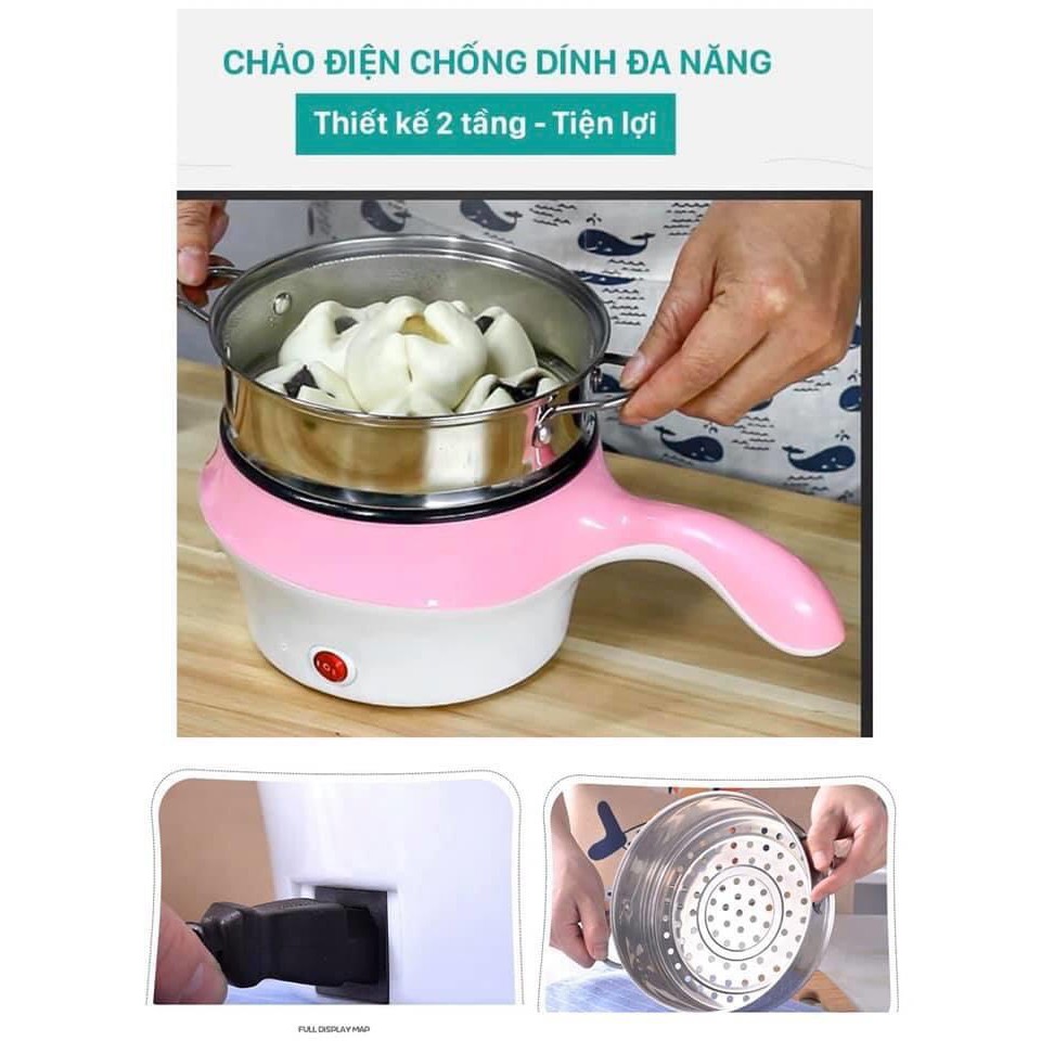 NỒI LẨU ĐIỆN ĐA NĂNG CHỐNG DÍNH THIẾT KẾ 2 TẦNG KÈM KHAY HẤP INOX CAO CẤP