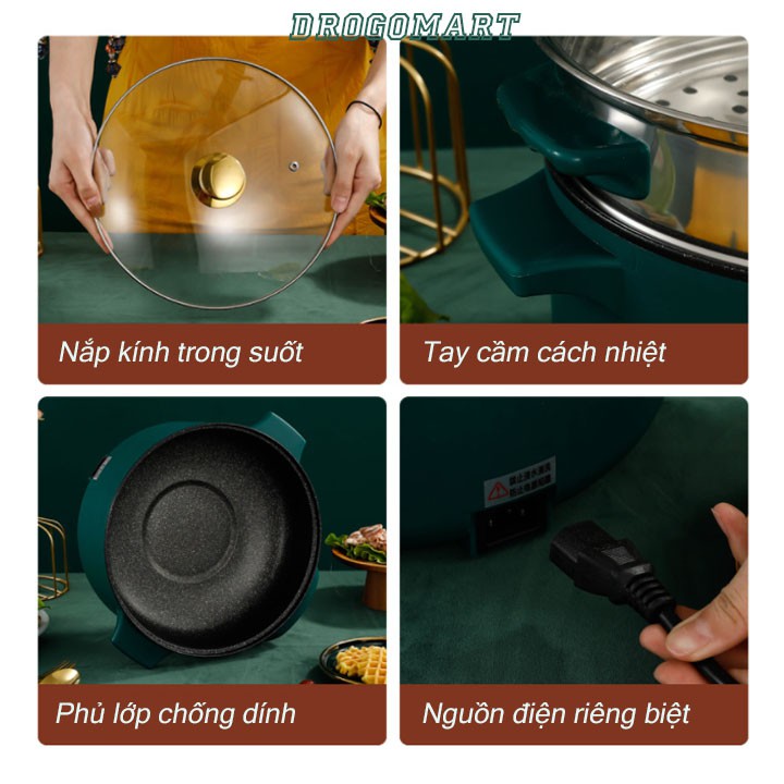 ❌NỒI LÂU ĐIỆN ĐA NĂNG THÔNG MINH ELECTRIC COOKER 24CMNồi Lẩu Điện Đa Năng Kèm Hấp Inox Cao Cấp⚡