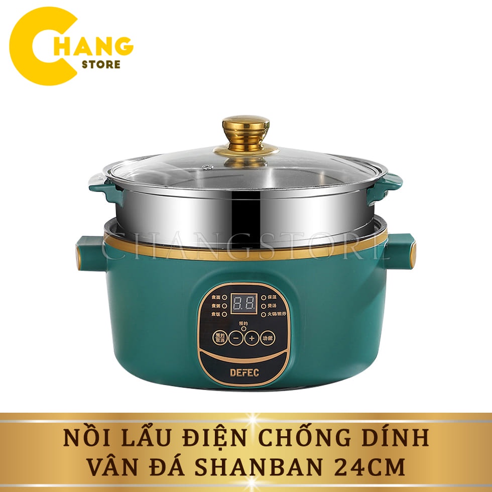 Nồi Lẩu Điện Đa Năng Chống Dính Vân Đá Electric Cooker Pot Shanban 24cm Kèm Hấp Inox Cao Cấp