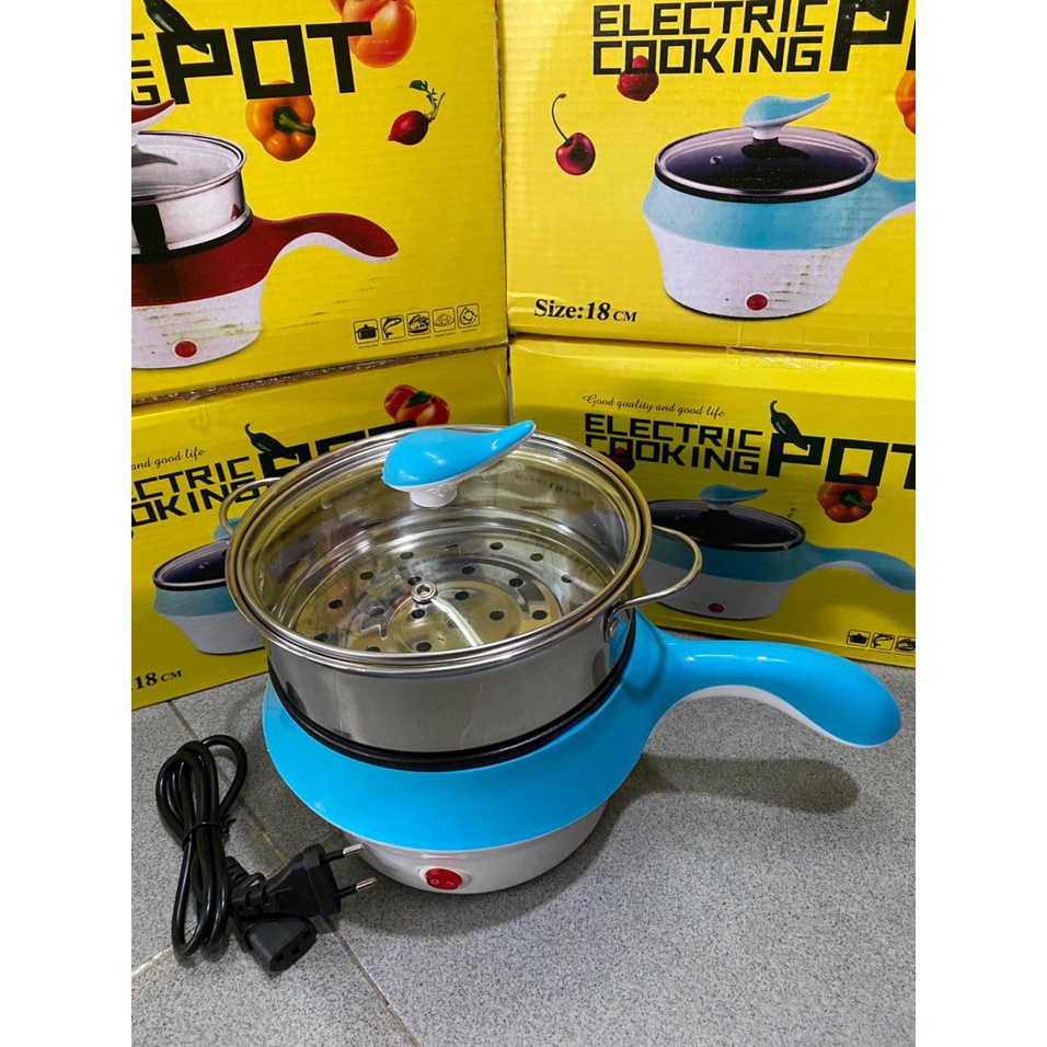 Nồi lẩu điện đa năng chống dính có Tay cầm và Xửng hấp 18cm