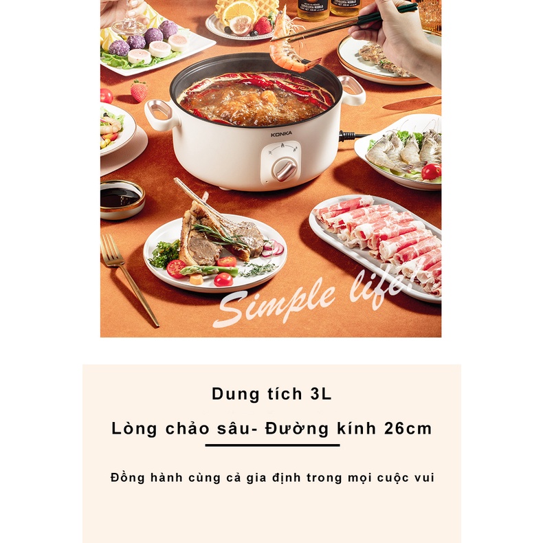 Nồi Lẩu Điện Đa Năng Chống Dính 3 Lít 1000W Hot Pot KONKA KZG-HP03
