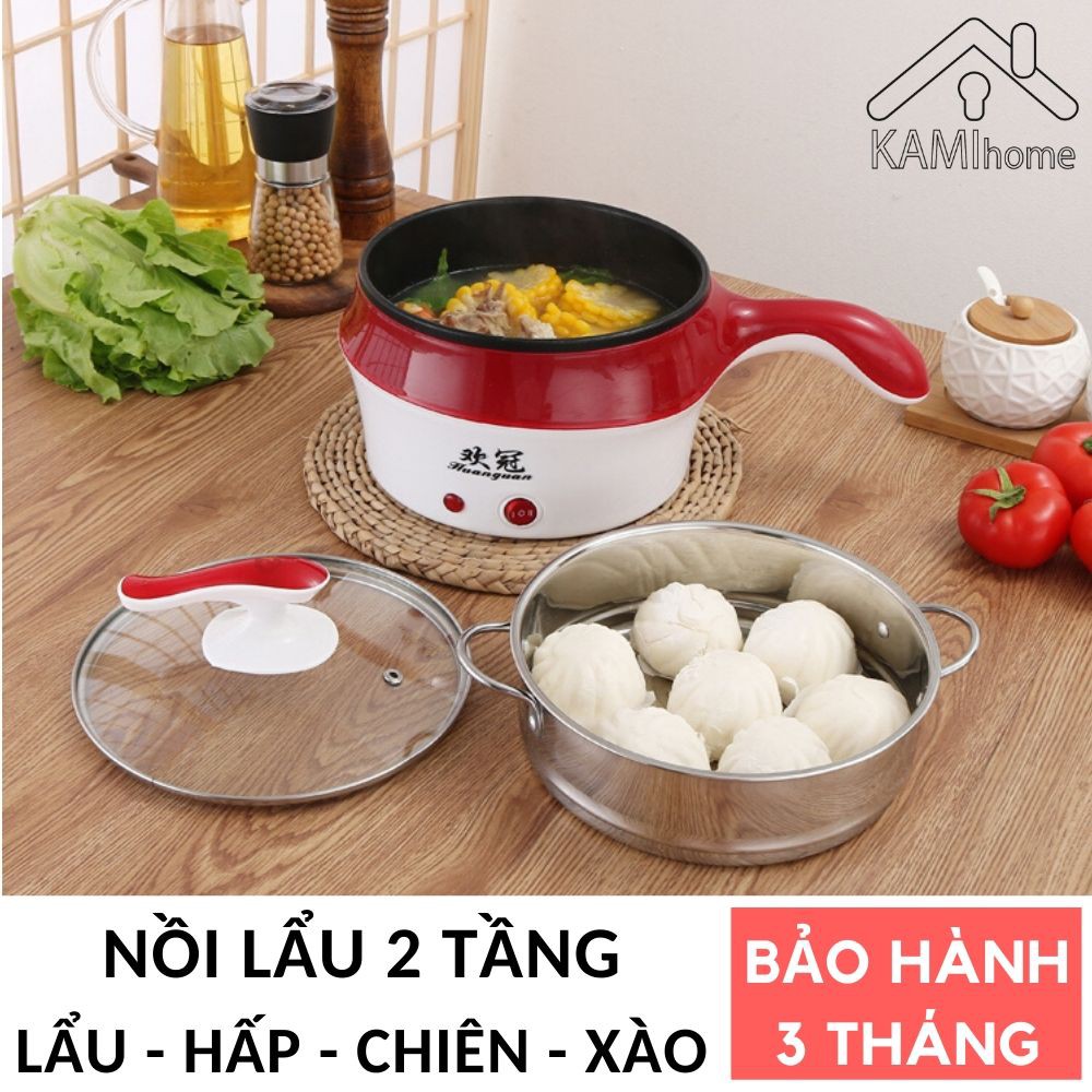 Giới thiệu Nồi lẩu điện đa năng có Tay cầm và Khay hấp 18cm Kami15004