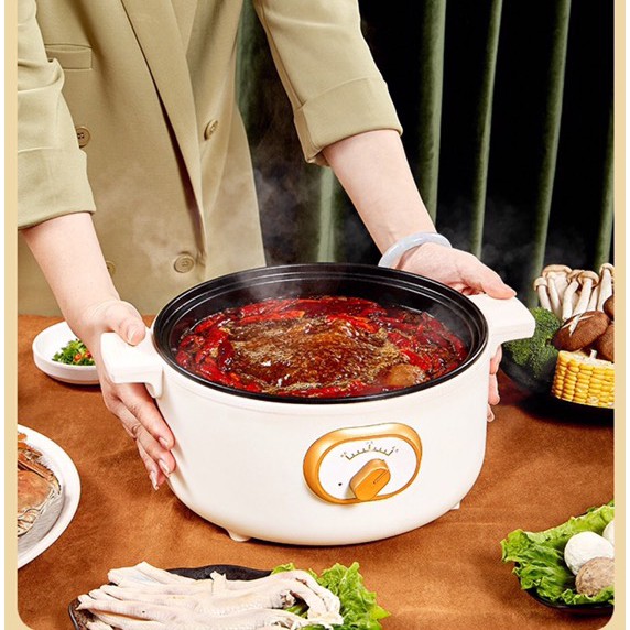 3. Chiếc nồi lẩu điện đa năng có độ linh hoạt cao không chỉ có chức năng nấu lẩu mà còn có thể làm các món chiên, xào, hấp,... với nút điều chỉnh nhiệt độ. Bạn cùng gia đình có thể quây quần bên nhau thưởng thức các món ăn thơm ngon, ấm nóng.