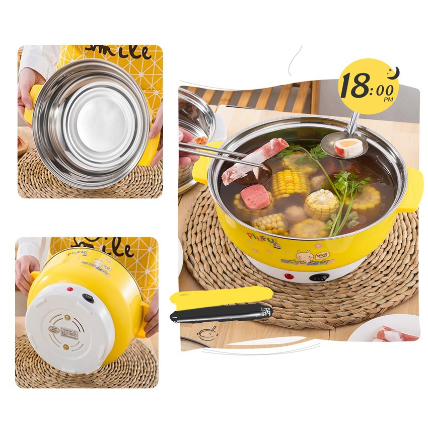 Nồi lẩu điện mini đa năng với Chất liệu Mặt trong: Inox cao cấp 304; Mặt ngoài: Nhựa cách nhiệt, có họa tiết trang trí cao cấp an toàn tuyệt đối cho sức khỏe người sử dụng.