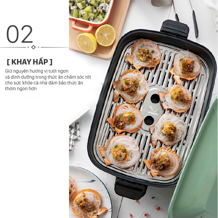 Với thiết kế thông minh của khay hấp, có thể sử dụng đồng thời vừa hầm, hoặc nấu các món ăn bằng nồi sâu lòng ở dưới, và hấp thực phẩm ở phía trên, giúp rút gọn được rất nhiều thời gian cho người sử dụng.