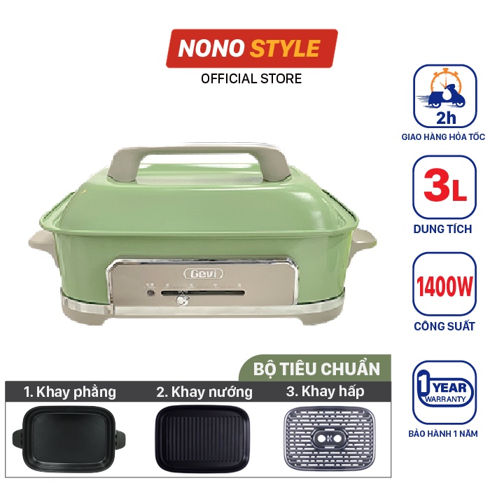 Giới thiệu [Mã ELHADEV giảm 4% đơn 300K] Nồi Lẩu Điện Đa Năng GEVI 3L 1400W, Bảo Hành 12 Tháng