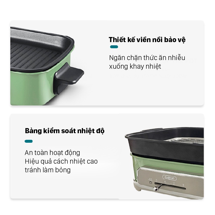 👉 Nồi có kiểu dáng cứng cáp sang trọng, màu sắc trang nhã thích hợp cho các gian bếp hiện đại. Họp mặt bạn bè cùng nhau nấu những món ăn ngon theo sở thích bằng chiếc Nồi Lẩu Nướng Đa Năng Gevi là vô cùng lý tưởng.