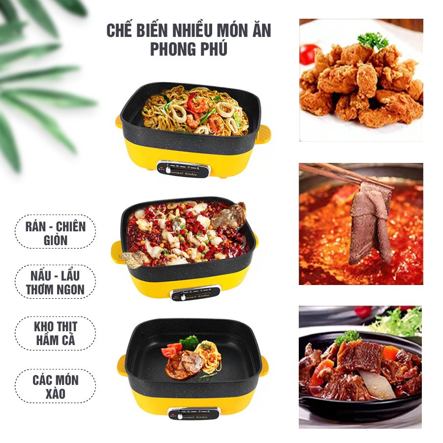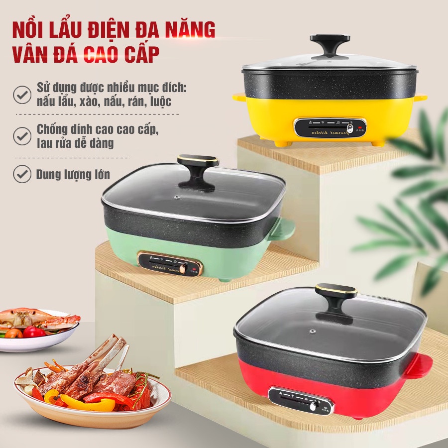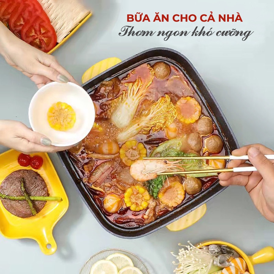 Nồi điện đa chức năng,nồi lẩu hình vuông, nồi chiên xào, dung lượng lớn 4.5L, chống dính, lau rửa dễ dàngNồi lẩu điện vuông HGJ-B30