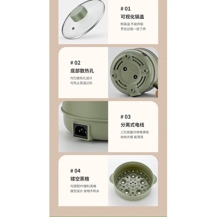 Giới thiệu Nồi Lẩu Điện Đa Năng Mini 18cm - Ca Nấu Mì Kèm Giá hấp Inox Có Tay Cầm