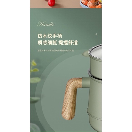 Nồi Lẩu Điện Đa Năng Mini 18cm - Ca Nấu Mì Kèm Giá hấp Inox Có Tay Cầm