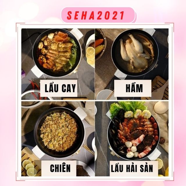 Nồi Lẩu Điện Đa Năng Mini 2L, 3L Chống Dính Nấu Lẩu Nấu Mì Nấu Cháo Chiên Xào Kho Hấp Hầm Cho 3 -6 Người Ăn Seha2021Nồi Điện Đa Năng Seha2021 – Siêu phẩm nhất định phải có trong căn bếp của bạn