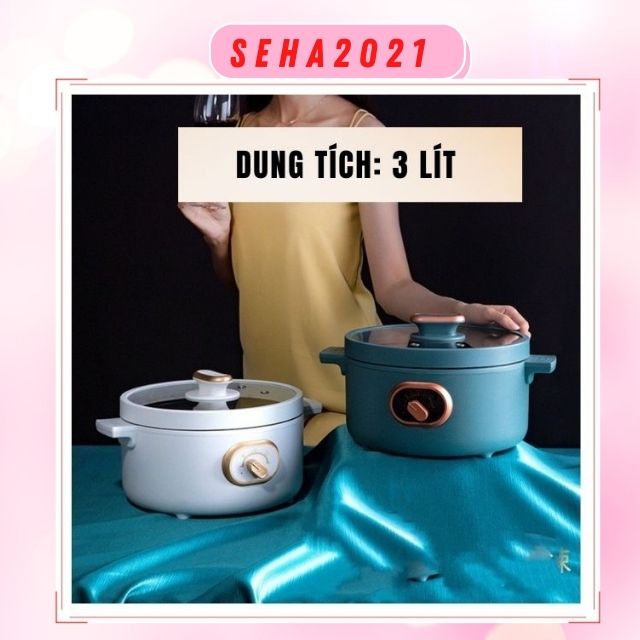 Nồi Lẩu Điện Đa Năng Mini 2L, 3L Chống Dính Nấu Lẩu Nấu Mì Nấu Cháo Chiên Xào Kho Hấp Hầm Cho 3 -6 Người Ăn Seha2021