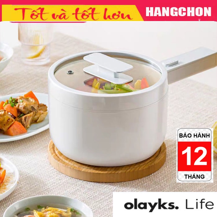 Nồi Lẩu Điện Đa Năng Mini OLAYKS Kèm Xửng Hấp, Chống Dính, Có Thể Chiên, Xào, Nấu ăn, nấu cơm, nấu lẩu