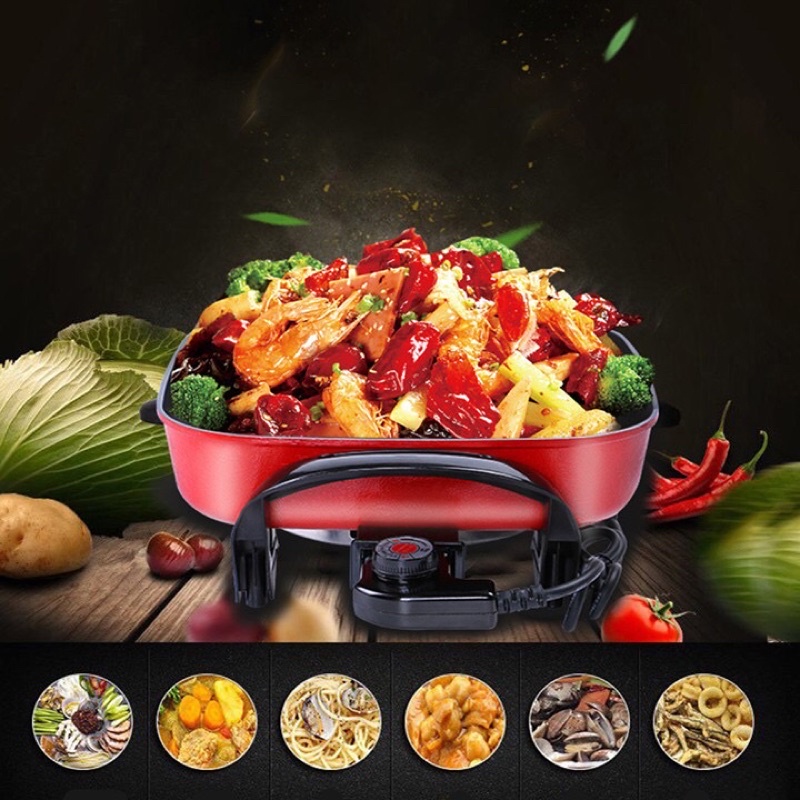 Nồi Lẩu Điện Đa Năng Phong Cách Hàn Quốc có thể chiên xào chảo siêu chống dínhBếp Lẩu Điện Đa Năng chống Dính Vuông Nồi Nấu Lẩu Hàn Quốc Nấu Thiết Bị 220 V Phích Cắm vuông