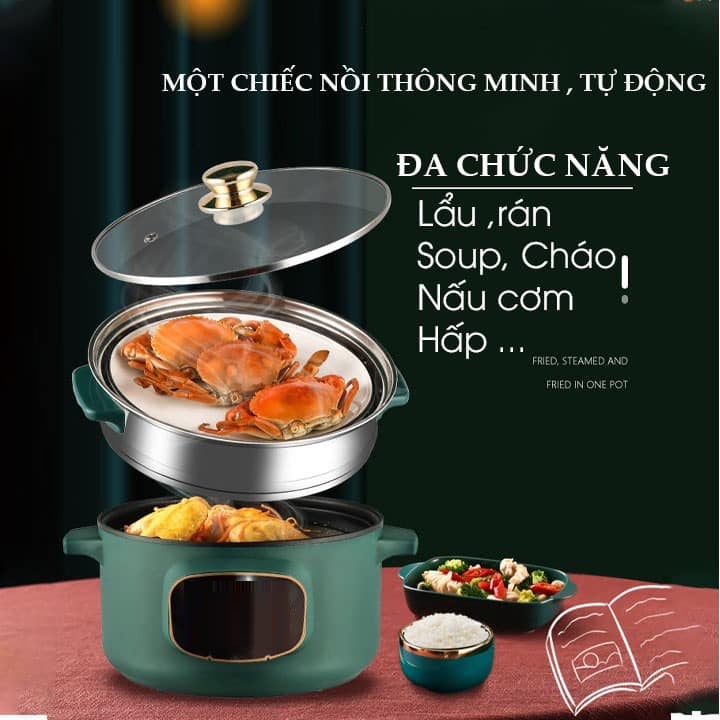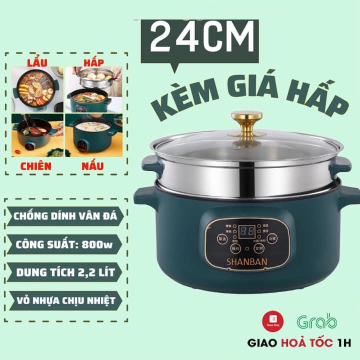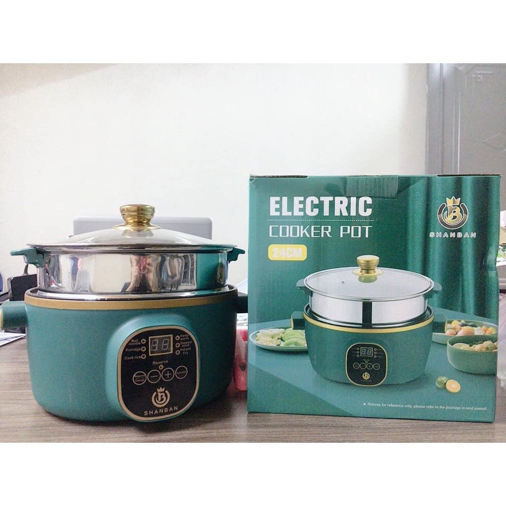 Nồi Lẩu Điện Đa Năng SHANBAN lồng hấp inox Freeship Bếp nấu 2 tầng thông minh,Hấp, Xào, Hấp, Chiên, Nấu Cháo, Soup