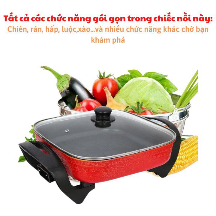 Nồi lẩu điện đa năng siêu chống dính chiên xào lẩu nướng tiện dụng