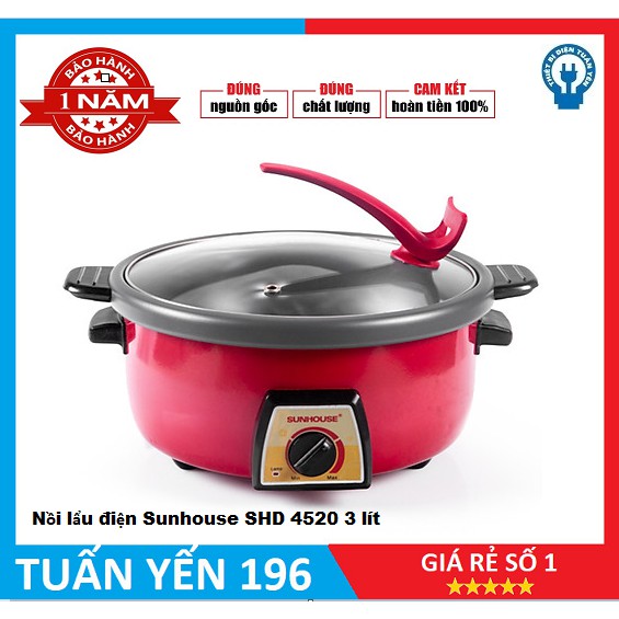 Giới thiệu Nồi Lẩu Điện Đa Năng Sunhouse SHD4520-1300W (3L) làm nóng nhanh, tỏa nhiệt đều – Đỏ - Hàng chính hãng