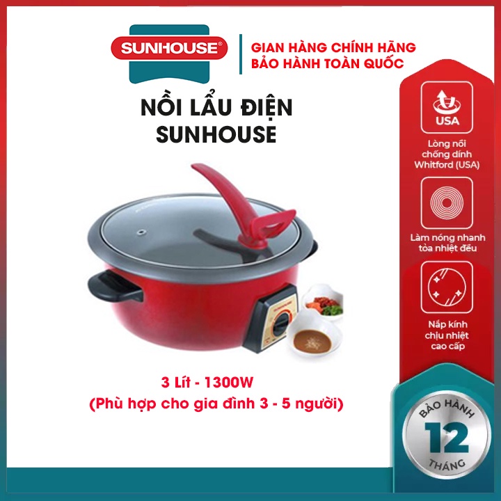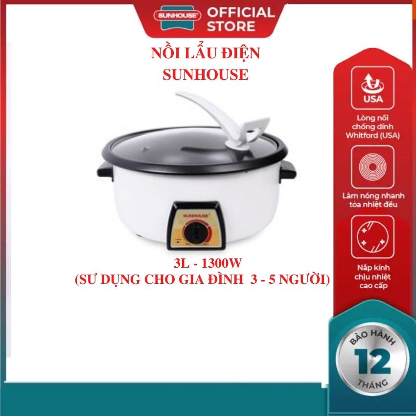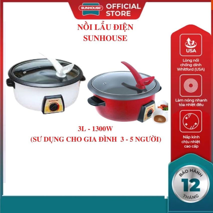 Thiết Bị Điện Gia Dụng > Đồ gia dụng nhà bếp > Nồi nấu đa năng || Nồi lẩu điện đa năng SUNHOUSE 3L 3.5L 5L chống dính cao cấp dùng nấu lẩu hầm rán xào - Hàng Chính Hãng Bảo HànhCòn hàng