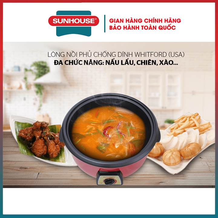 Nồi lẩu điện đa năng SUNHOUSE SHD4521-2022 dung tích 3L chống dính cao cấp dùng nấu lẩu hầm rán xào