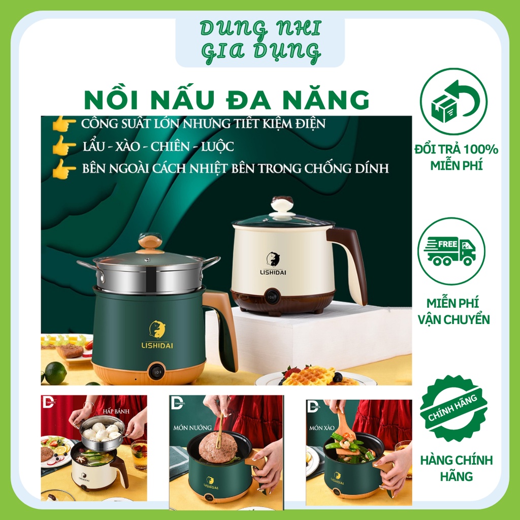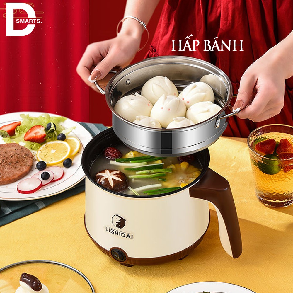Nồi Lẩu Điện Đa Năng Tặng Kèm Giá Hấp Nấu Hấp Chiên Xào Rán Nồi Lẩu MiNi Lòng Nồi Vân Đá Chống Dính Siêu Bền