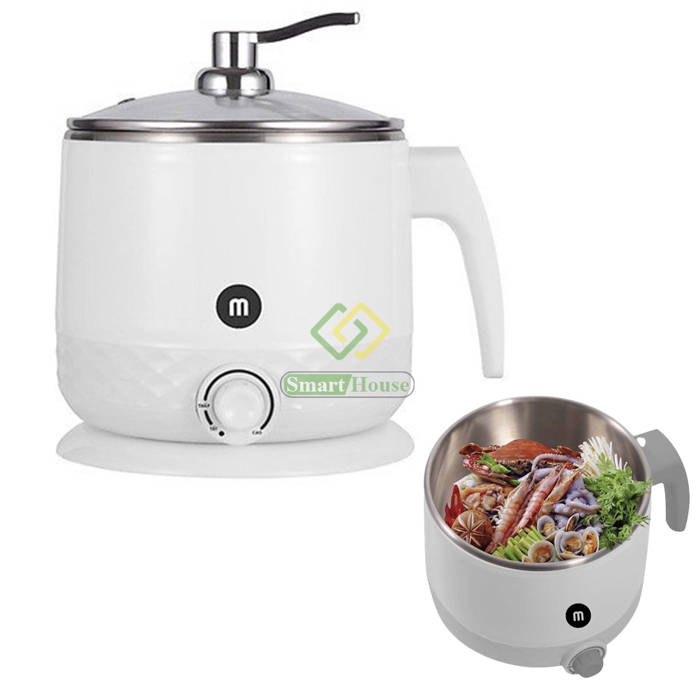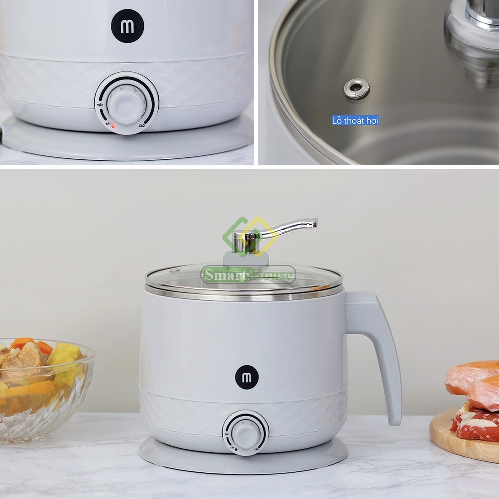 Ca Nấu Mì Nấu Lẩu, Nướng, Hấp,Luộc, Chiên Đa Năng Tiện Lợi Mishio 600W Inox Không Gỉ 304 Giữ Nhiệt Lâu, Bền