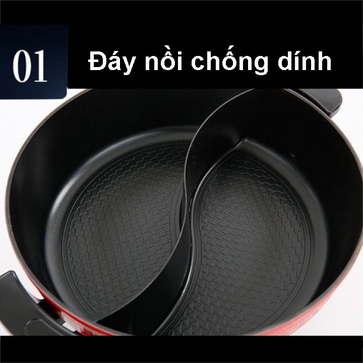 Nồi lẩu điện hai ngăn chống dính tiện lợi, nồi lẩu uyên ương hai ngăn dành cho gia đìnhĐặc điểm nổi bật của sản phẩm Nồi lẩu điện hai ngăn chống dính tiện lợi, nồi lẩu uyên ương hai ngăn dành cho gia đình: