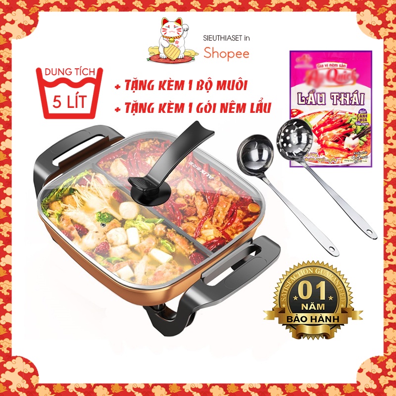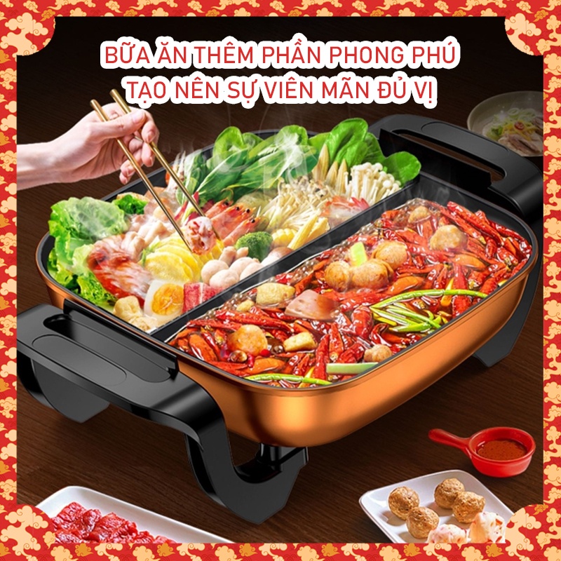 Nồi Lẩu Điện Kép Đa Năng Chia 2 Ngăn Phủ Chống Dính Bảo Hành 12 Tháng Kèm Quà Tặng Kèm Lau Dien Bếp Lẩu Hơi