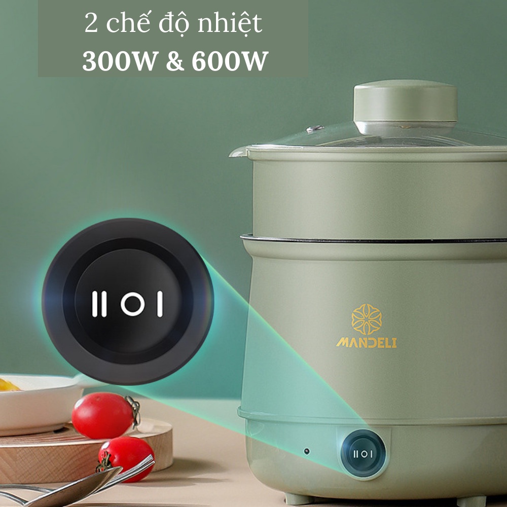 Nồi Lẩu Điện Mini 1.8L Kèm Giá Hấp, Ca Nấu Mì Có Tay Cầm - Nồi Lẩu Đa Năng 2 Nấc Nhiệt