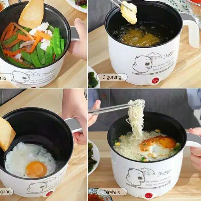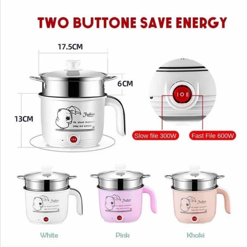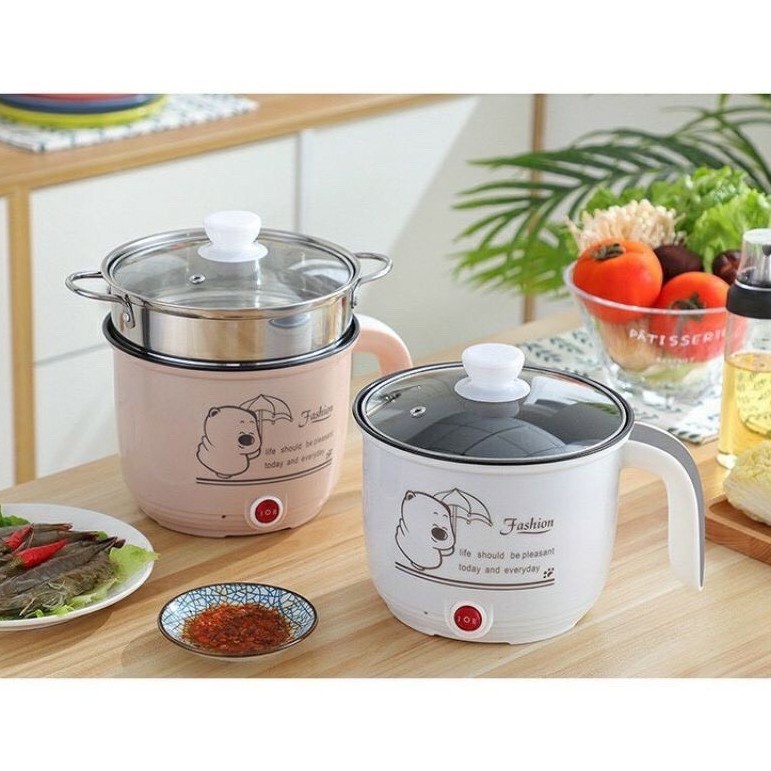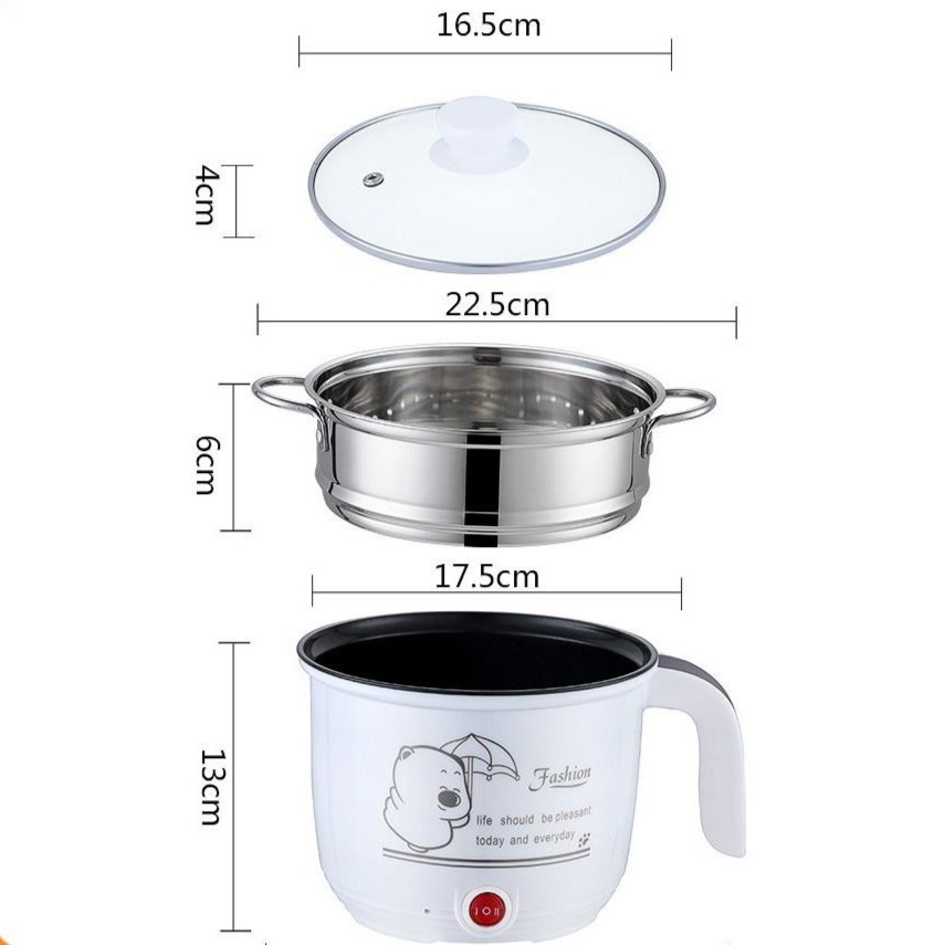 Nồi Lẩu Điện Mini 1,8L kèm giá hấp - Ca Nấu Mì, Nấu Cơm Đa Năng Có Tay Cầm