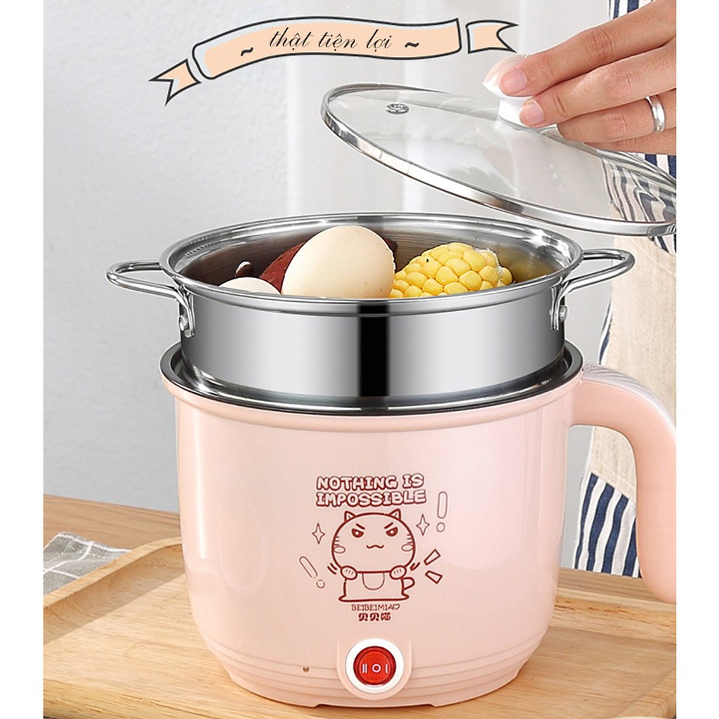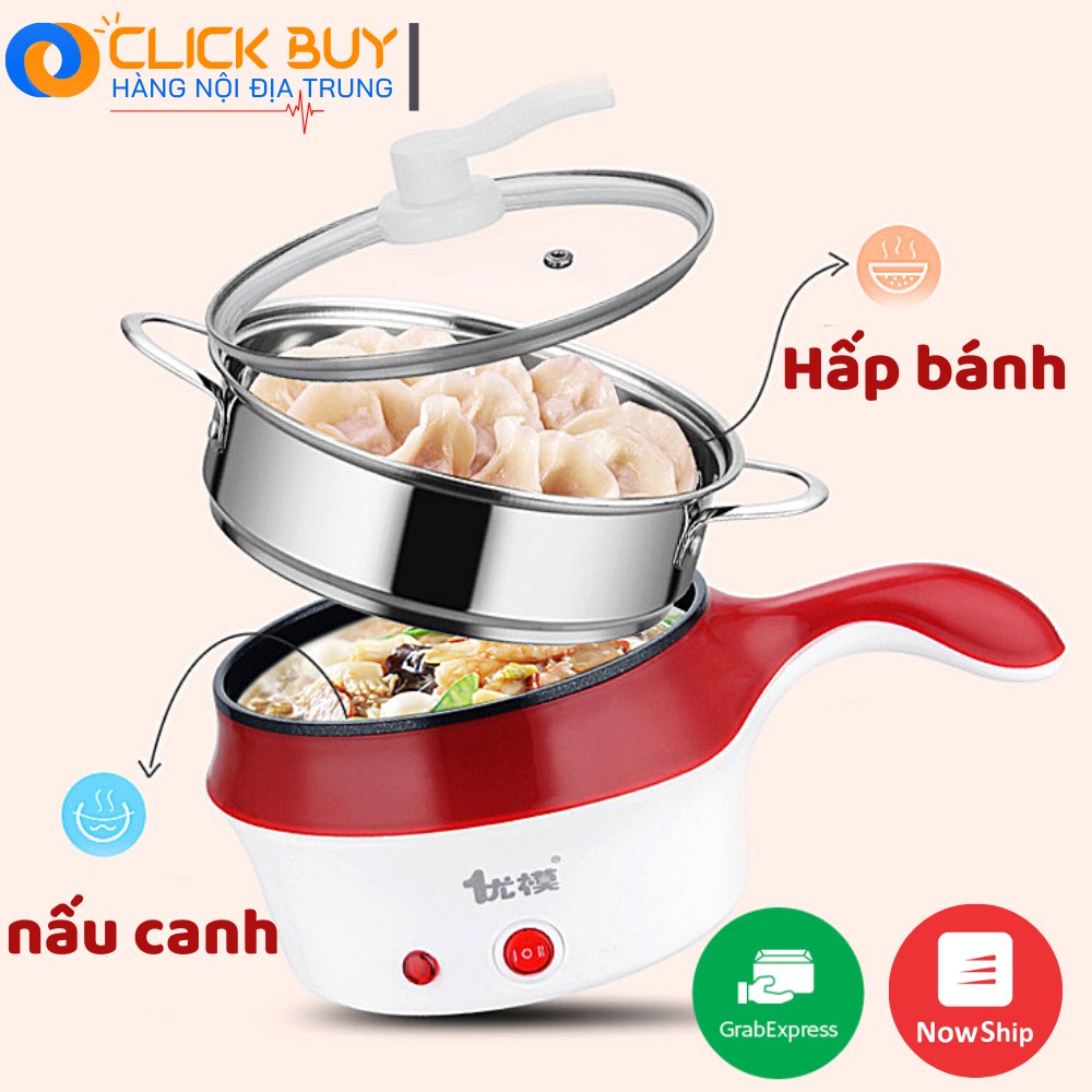 Nồi Lẩu Điện Mini 2 CHẾ ĐỘ [BH 12 THÁNG] Ca Nấu Mì Siêu Tốc CHỐNG DÍNH Tặng Kèm Xửng Hấp SIÊU XINH