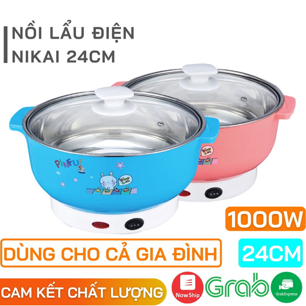 Nồi Lẩu Điện Mini 24cm Nika 1000W Inox 304 - Bếp Lẩu Gia Đình 24 Cm SIÊU TỐC BẢO HÀNH 1 NĂM