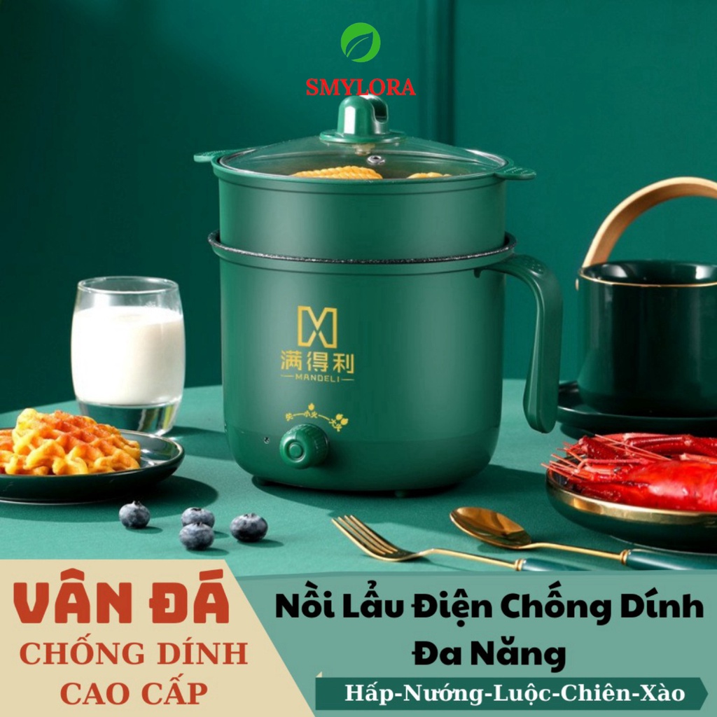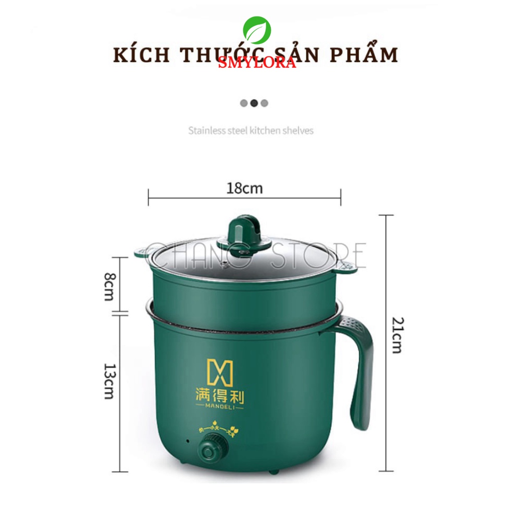 Nồi Lẩu Điện Mini, Ca Nấu Mì Cầm Tay Đa Năng Có Tay Cầm 1,8L Kèm Giá Hấp - Nồi Lẩu Điện 2 Nấc Nhiệt Mẫu Mới.