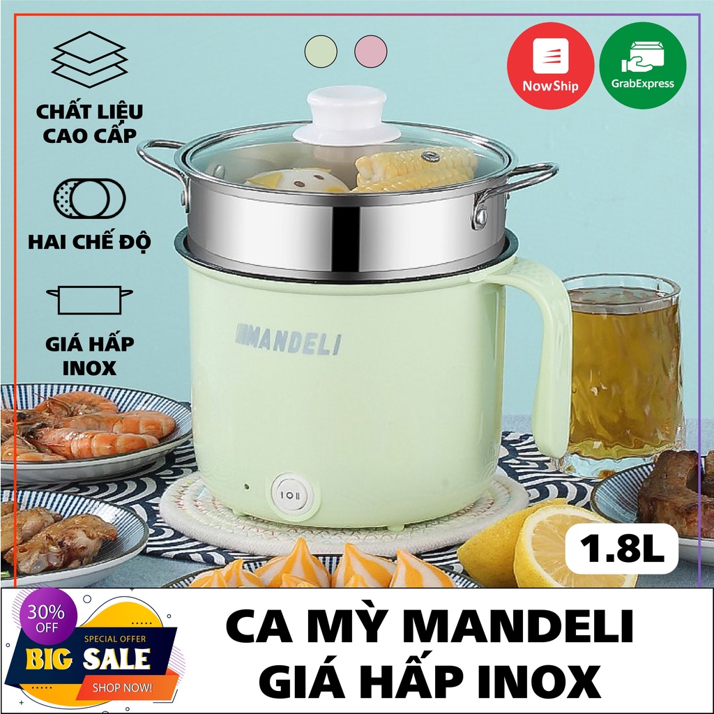 Nồi Lẩu Điện Mini Cầm Tay 2 NẤC NHIỆT Nấu Cơm, Nấu Mì Đa Năng 1.8L