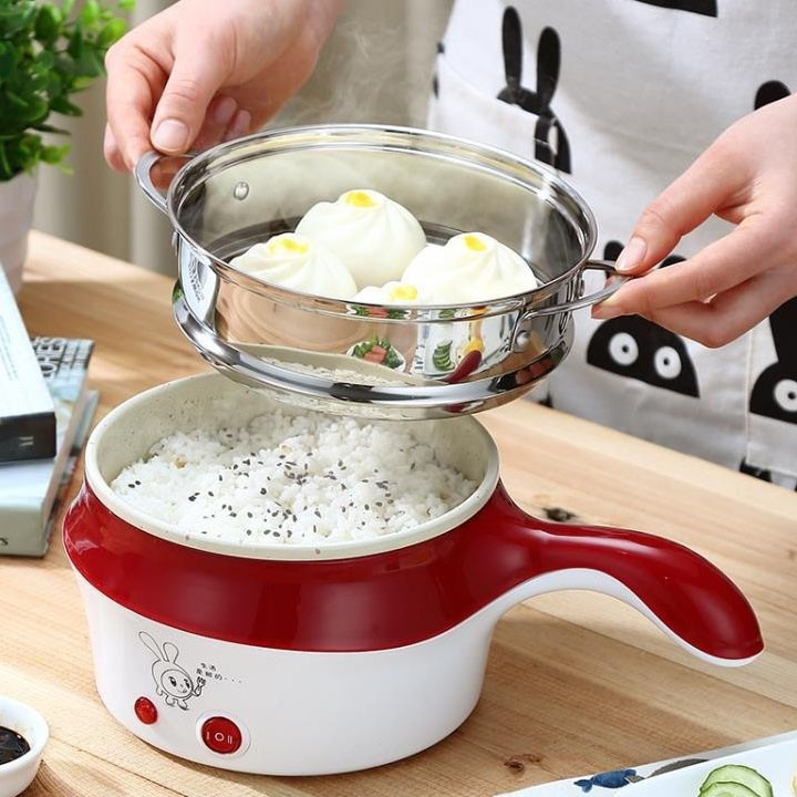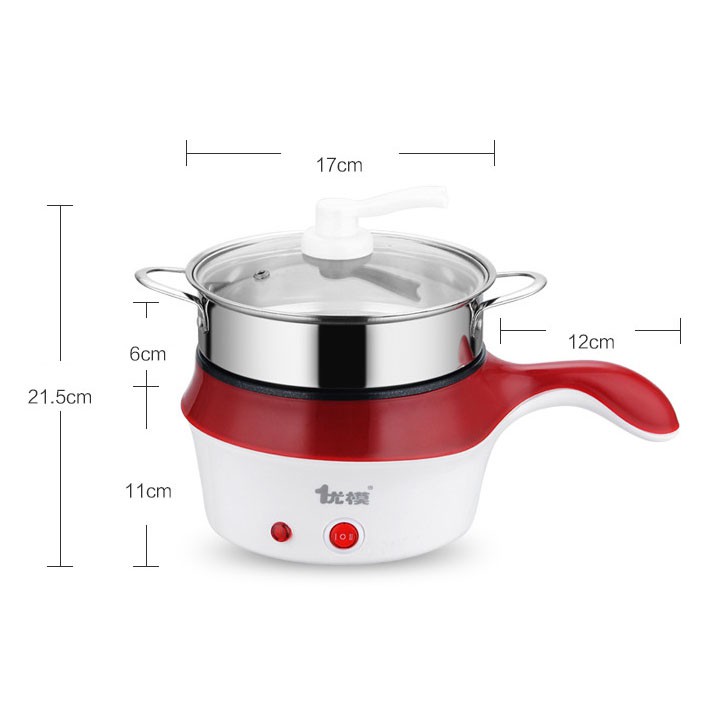 Nồi lẩu điện mini đa năng 18cm kèm giá hấp có quai cầm tiện lợi
