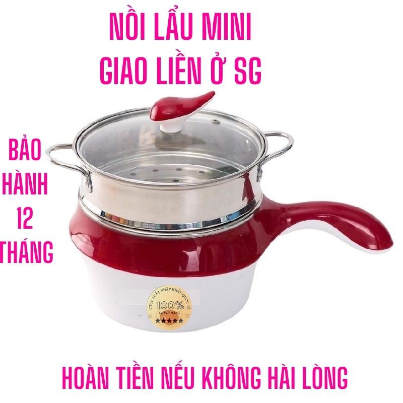 Nồi lẩu điện mini đa năng 2 in 1 nấu mì 2 tầng ca inox chống dính vân đá tiện lợi hàng chính hãng