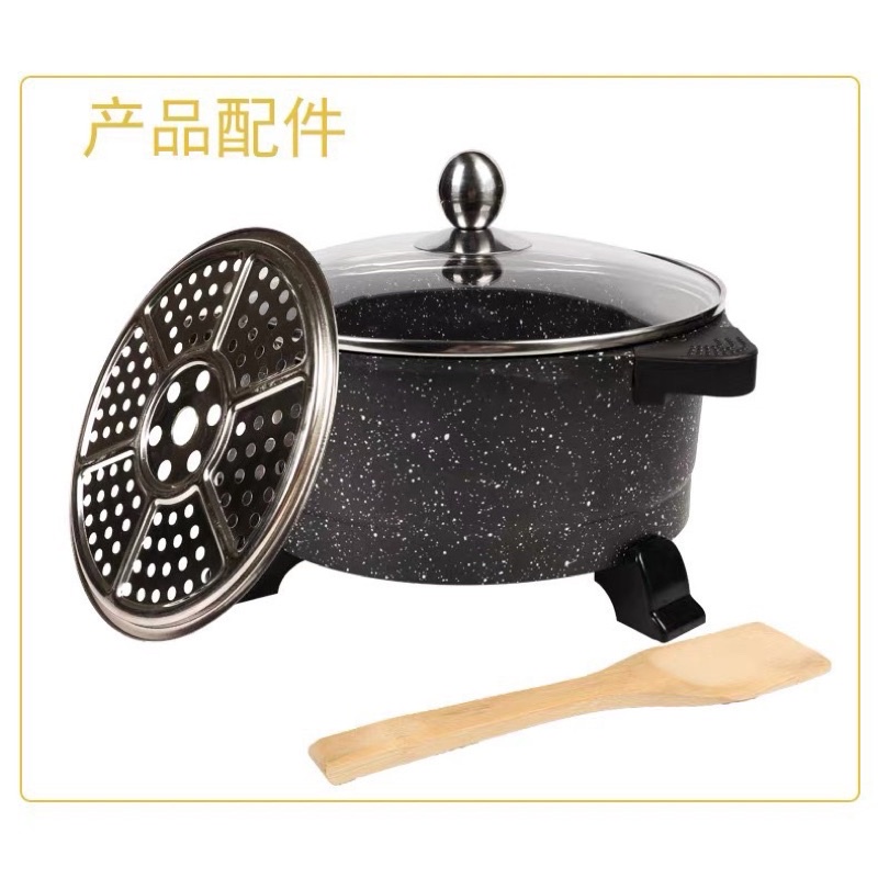 🍢Nồi Lẩu Điện Đa Năng có thiết kế lòng nồi chống dính cao cấp, dày dặn, có thể dùng chế biến nhều loại thức ăn khác nhau như chiên, nướng, xào hay nấu lẩu.