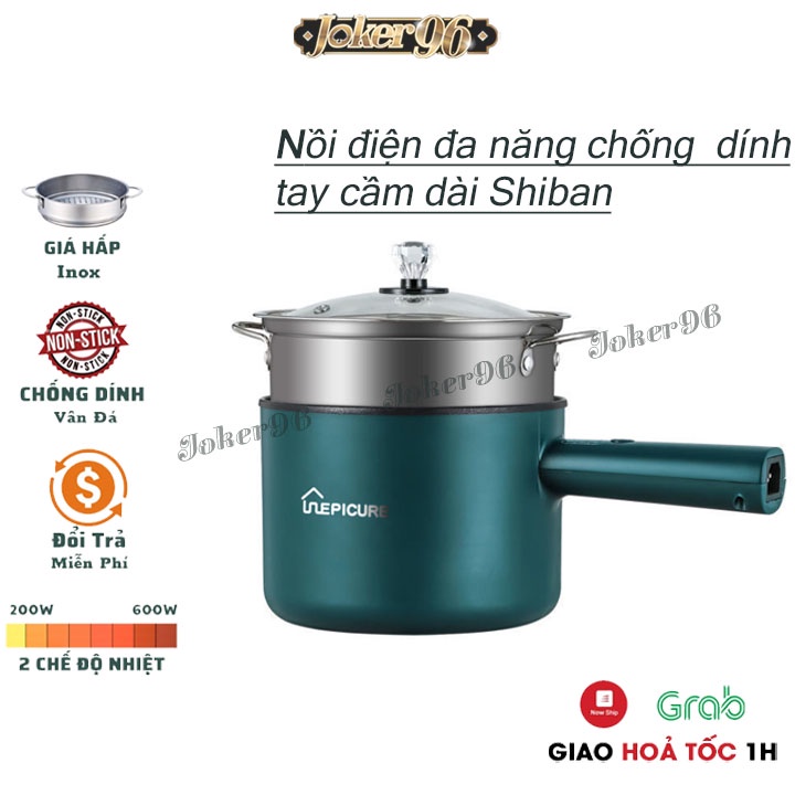 Nồi Lẩu Điện Mini Đa Năng Shiban Tay Dài Có Xửng Hấp Inox, Bếp Điện Mini Chống Dính