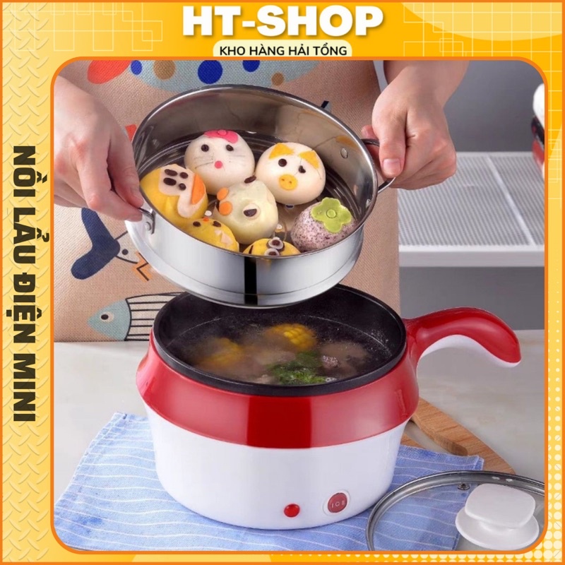 Nồi Lẩu Điện Mini Kèm Giá Hấp , Nồi Điện Chiên Xào Đa Năng Tay Cầm Dài