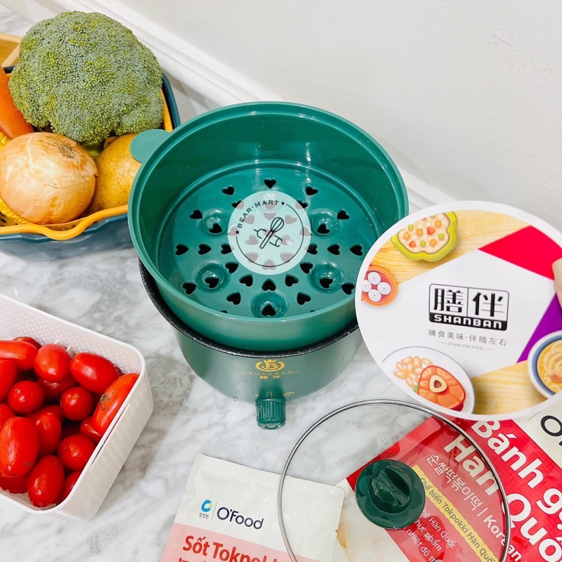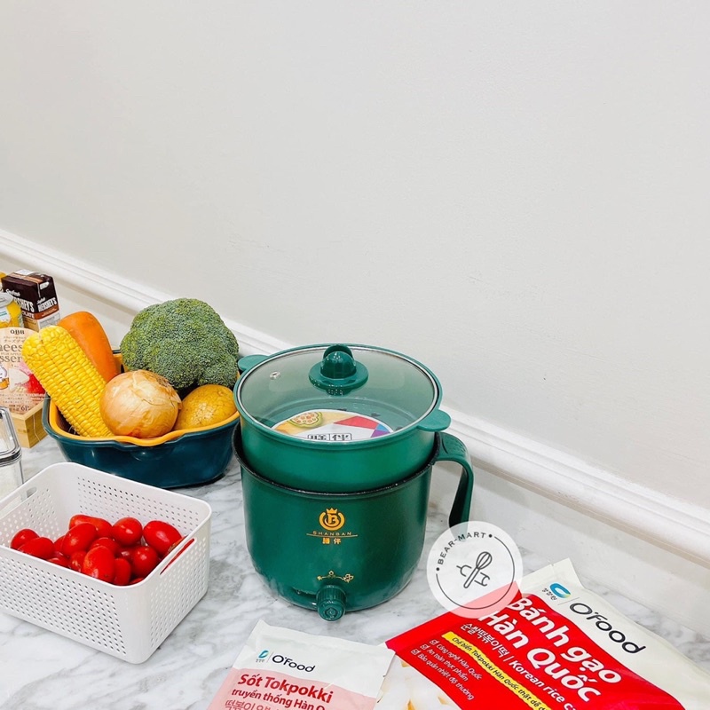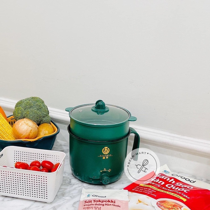 Nồi Lẩu Điện Mini, Nấu Mì 2 Tầng Kèm Giá Hấp Đa Năng Nướng, Luộc, Chiên Chống Dính Vấn Đá Tiện Lợi, Ca nấu mì mẫu mới