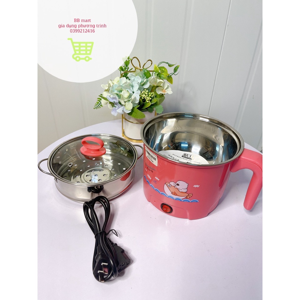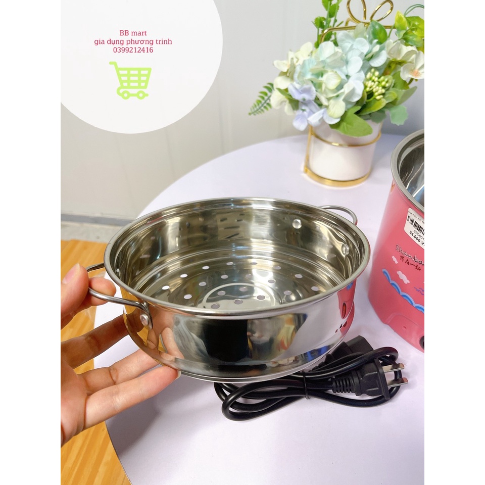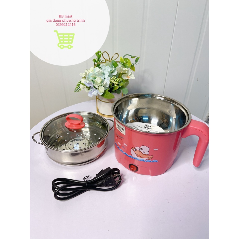 Nồi Lẩu Điện Mini, Nấu Mì 2 Tầng Kèm Giá Hấp Đa Năng Nướng, Luộc, Chiên Chống Dính Vấn Đá Tiện Lợi, Ca nấu mì mẫu mới