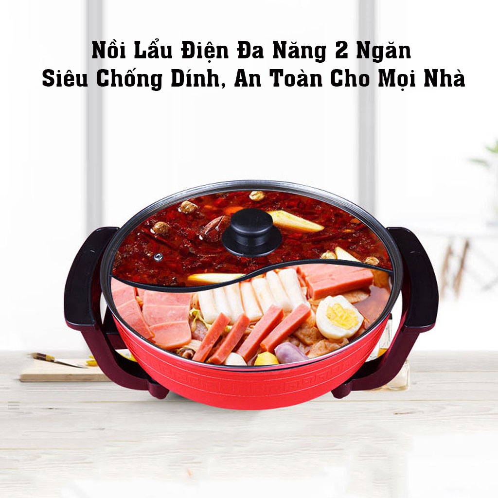 Nồi Lẩu Điện Nồi Lẩu Đa Năng 2 Ngăn Chống Dính, Sôi Nhanh, Siêu Tiện Dụng