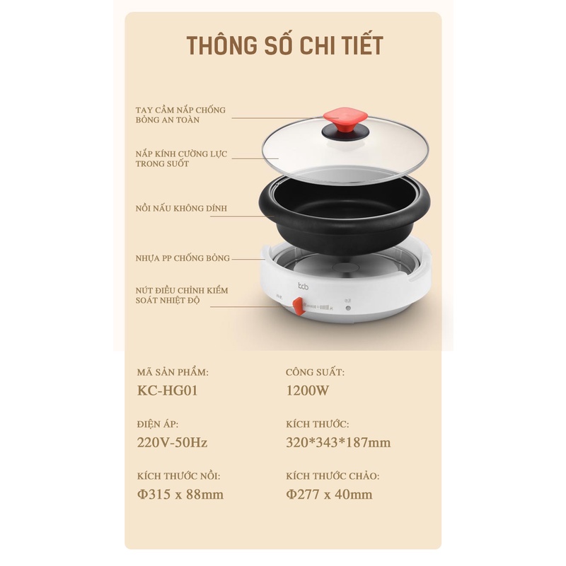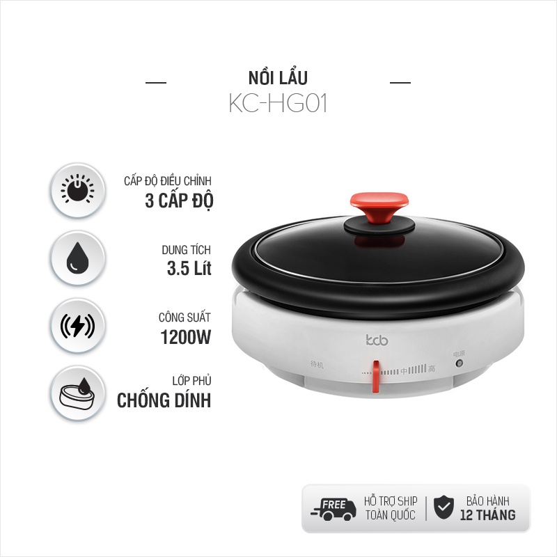 Nồi lẩu điện chống dính Việt Star KC-HG01, công suất 1200W, dung tích 3.5L, 3 chế độ điều chỉnh,bảo hành 12 tháng